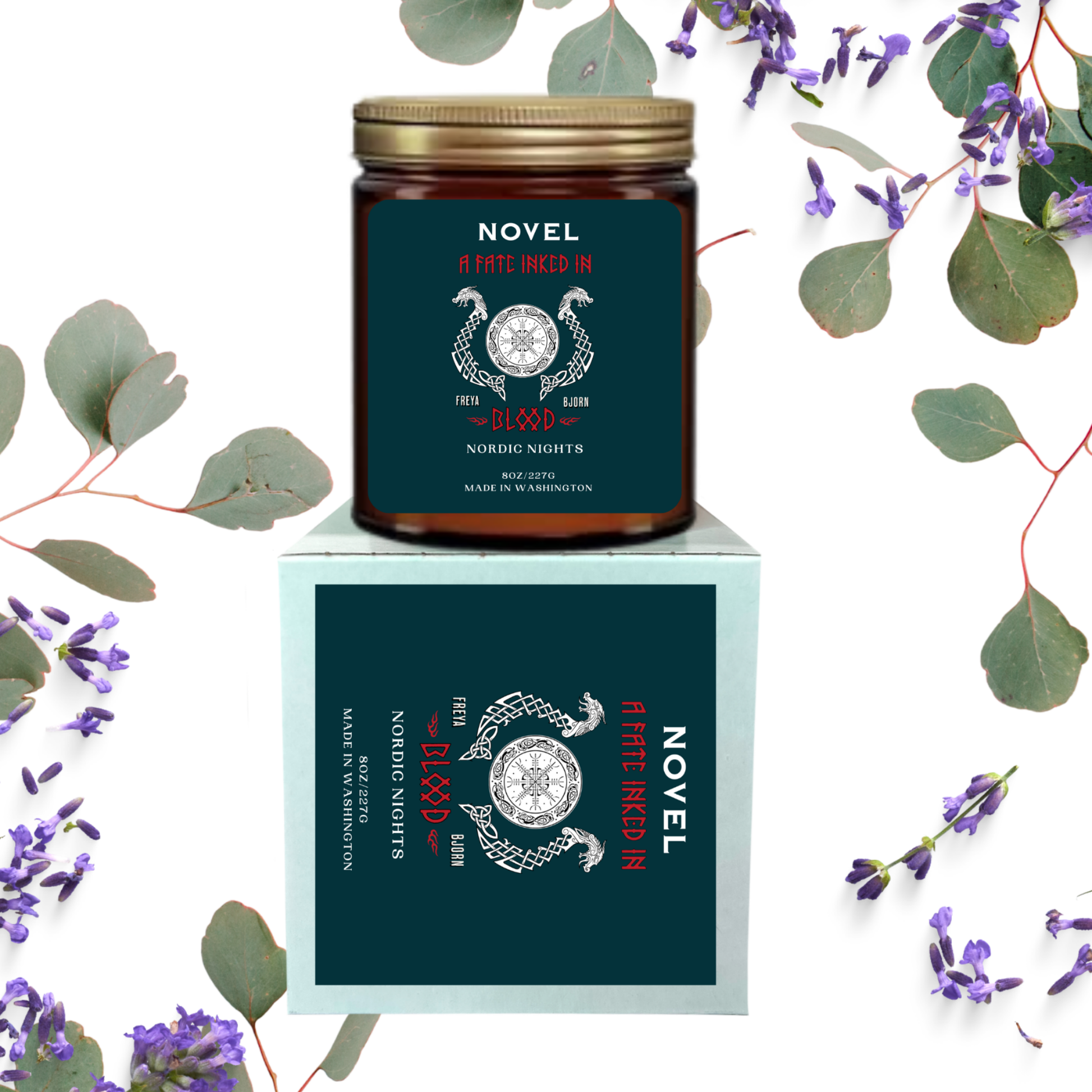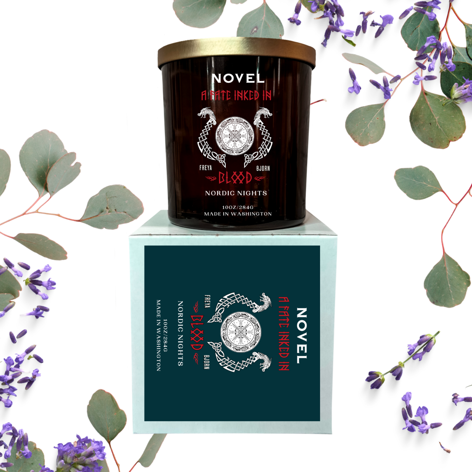 Details: Available in three size options: 3oz wax melt, 8oz candle and 10oz candle. Each Novel Candle is made using premium soy wax, ambiance-enhancing wood wicks and uses only the highest quality and cleanest fragrance oils available. Inspired by A Fate Inked in Blood by Danielle Jensen. Created with permission from the author.