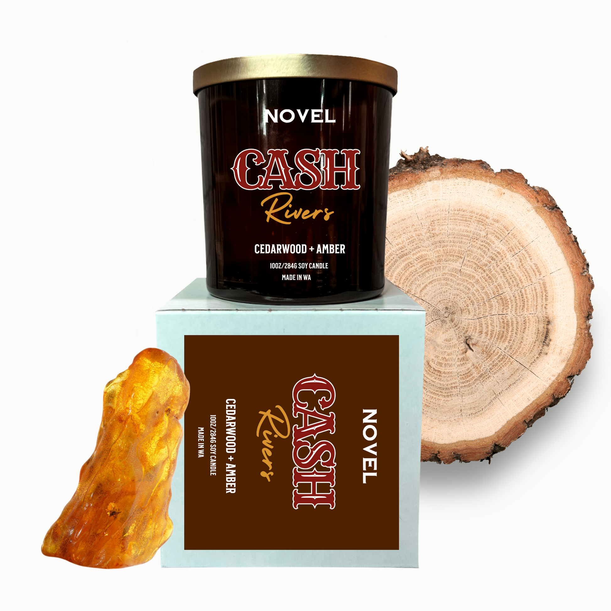 Details: Available in three size options: 3oz wax melt, 8oz candle and 10oz candle. Each Novel Candle is made using premium soy wax, ambiance-enhancing wood wicks and uses only the highest quality and cleanest fragrance oils available. Inspired by The Lucky River Ranch series by Jessica Peterson. Created with permission from the author.