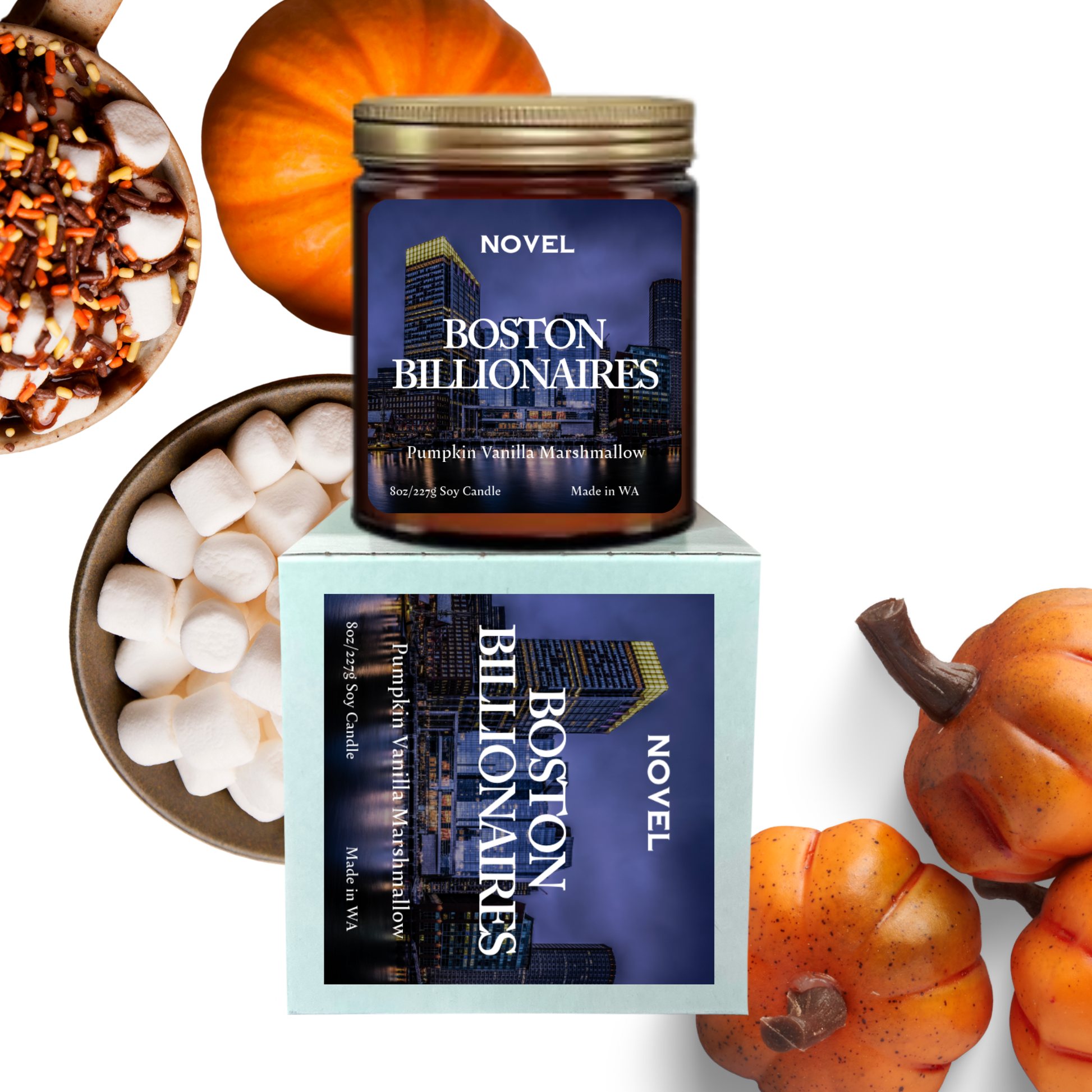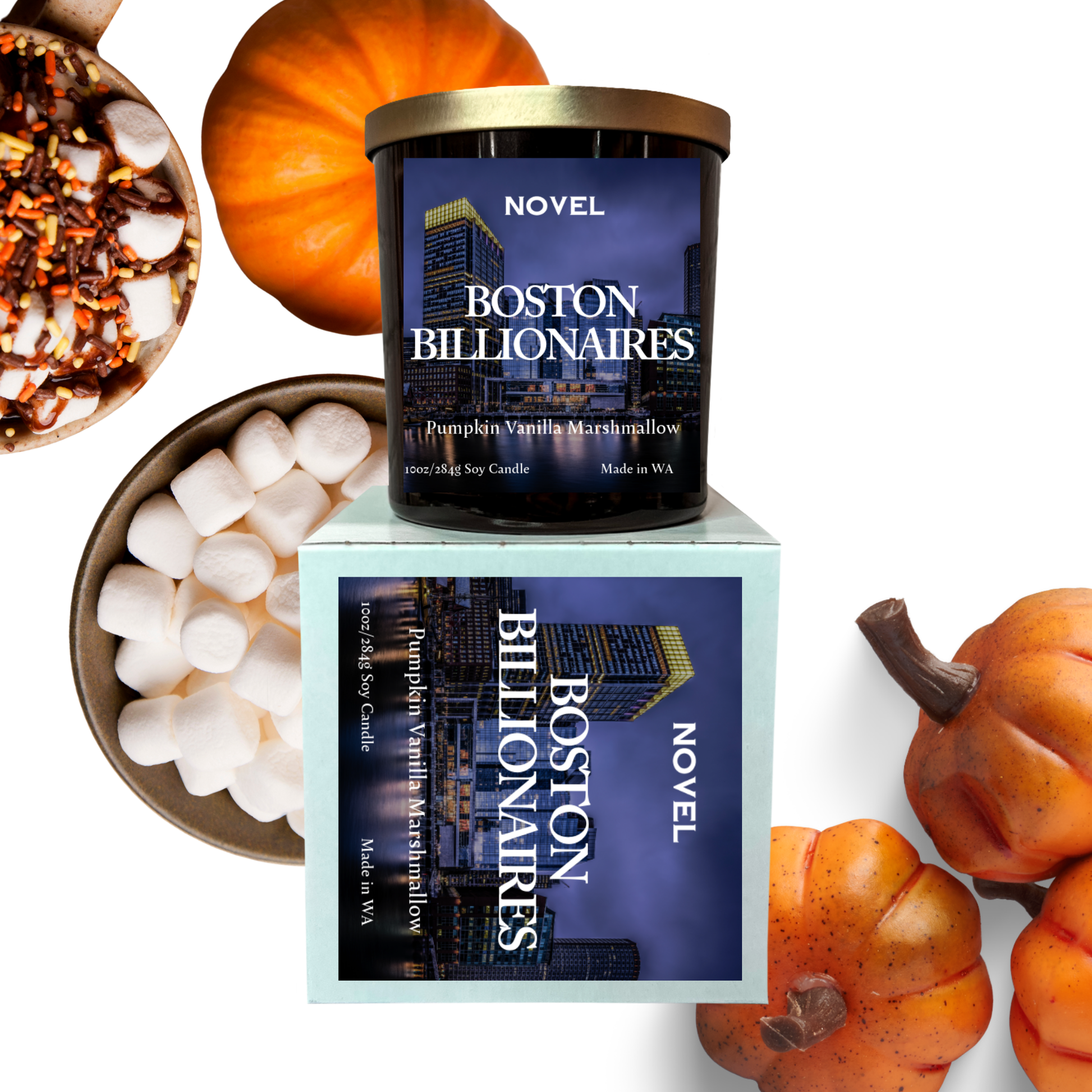 Details: Available in three size options: 3oz wax melt, 8oz candle and 10oz candle. Each Novel Candle is made using premium soy wax, ambiance-enhancing wood wicks and uses only the highest quality and cleanest fragrance oils available. Inspired by Boston Billionaires by Brittanée Nicole. Created with permission from the author.