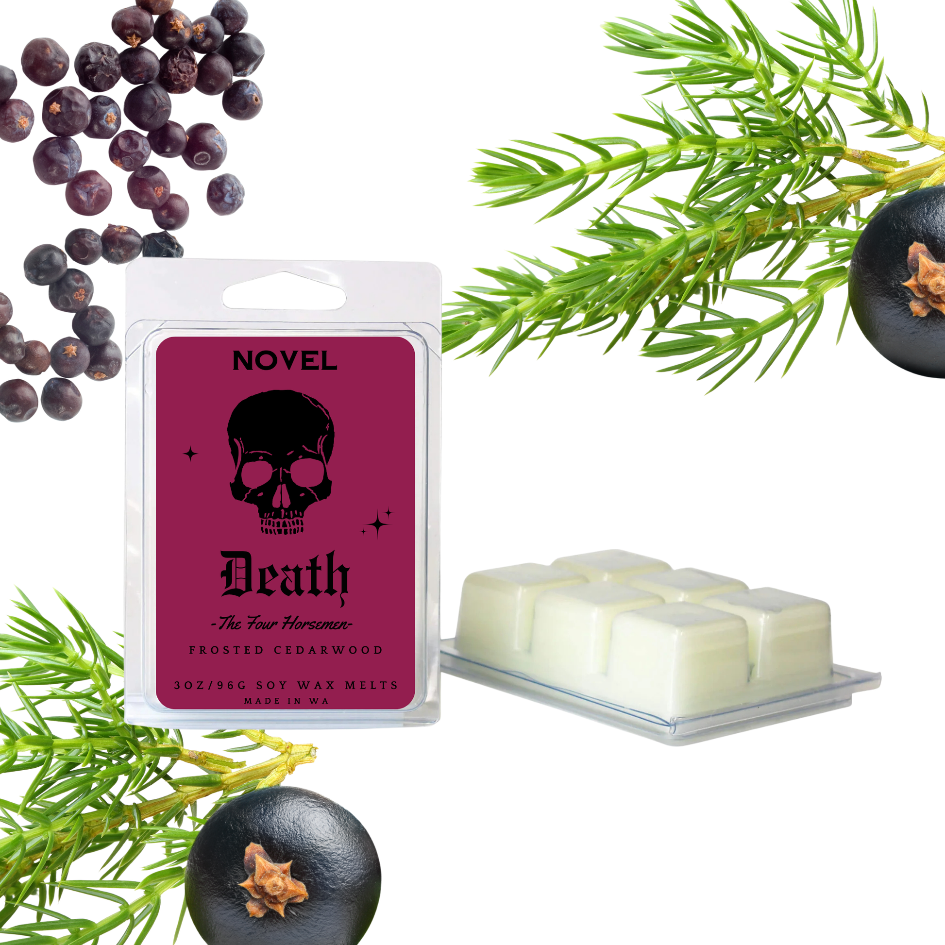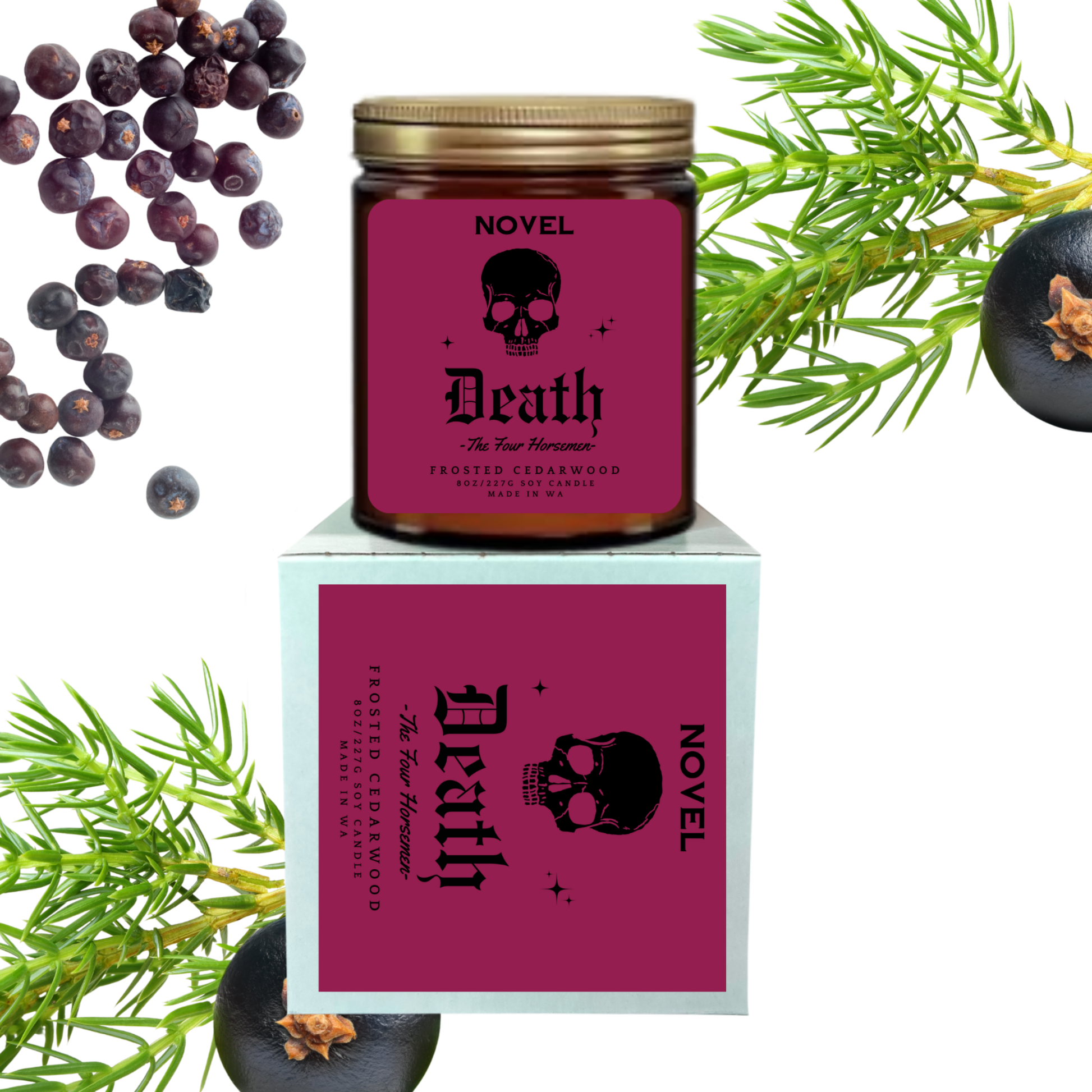 Details: Available in three size options: 3oz wax melt, 8oz candle and 10oz candle. Each Novel Candle is made using premium soy wax, ambiance-enhancing wood wicks and uses only the highest quality and cleanest fragrance oils available. Inspired by The Four Horsemen series by Laura Thalassa. Created with permission from the author.