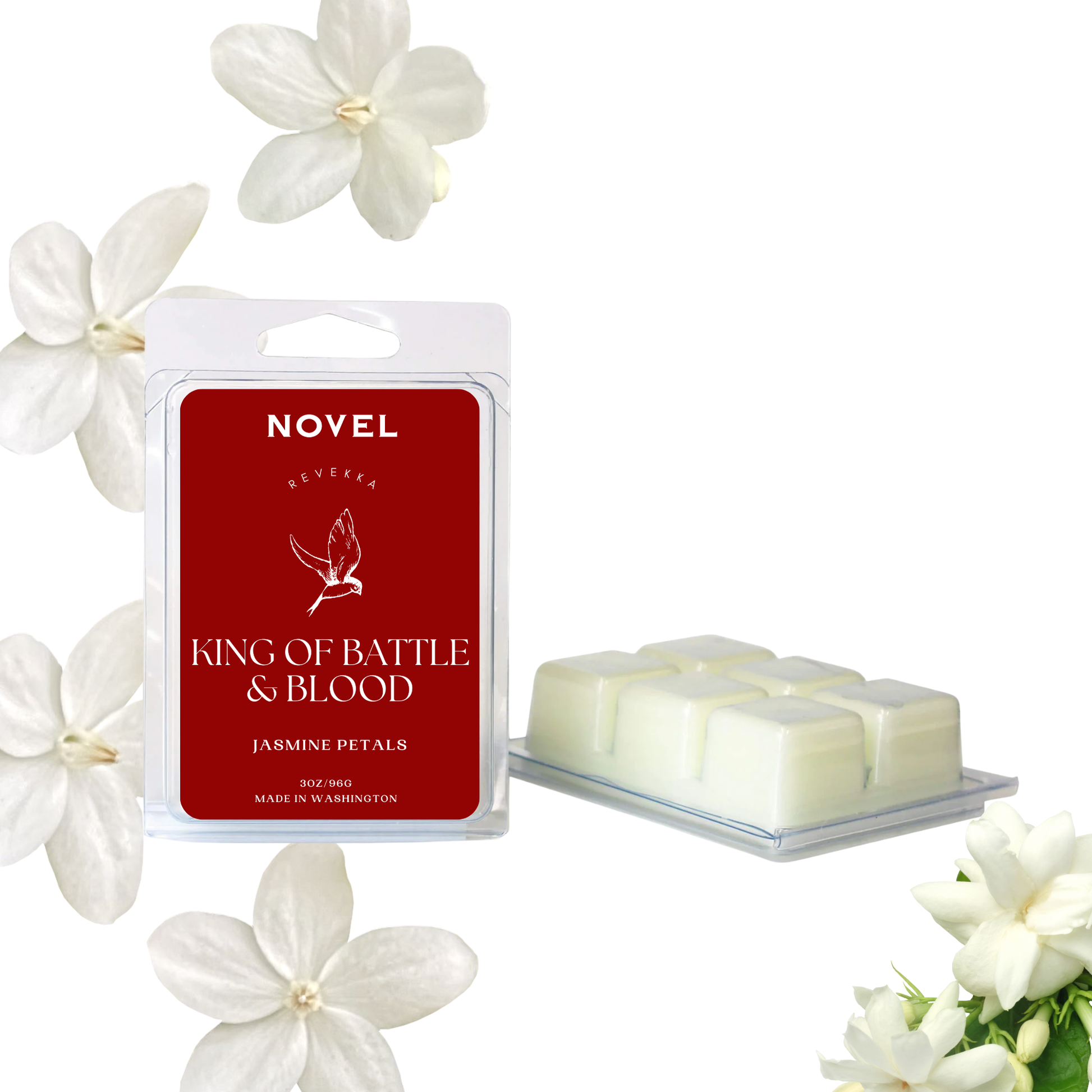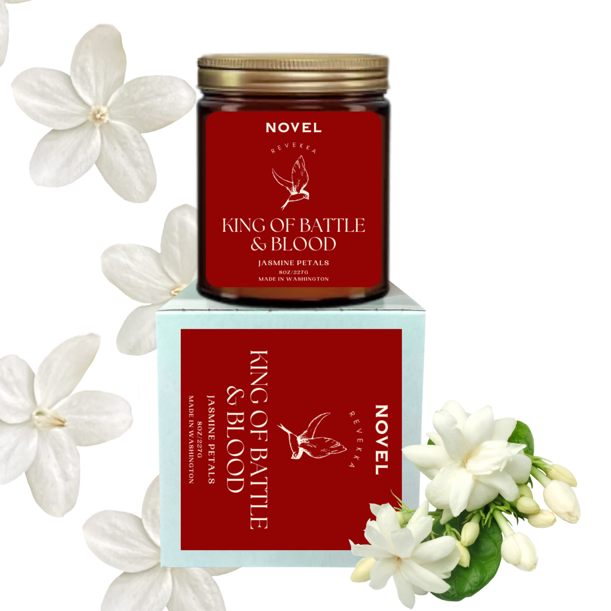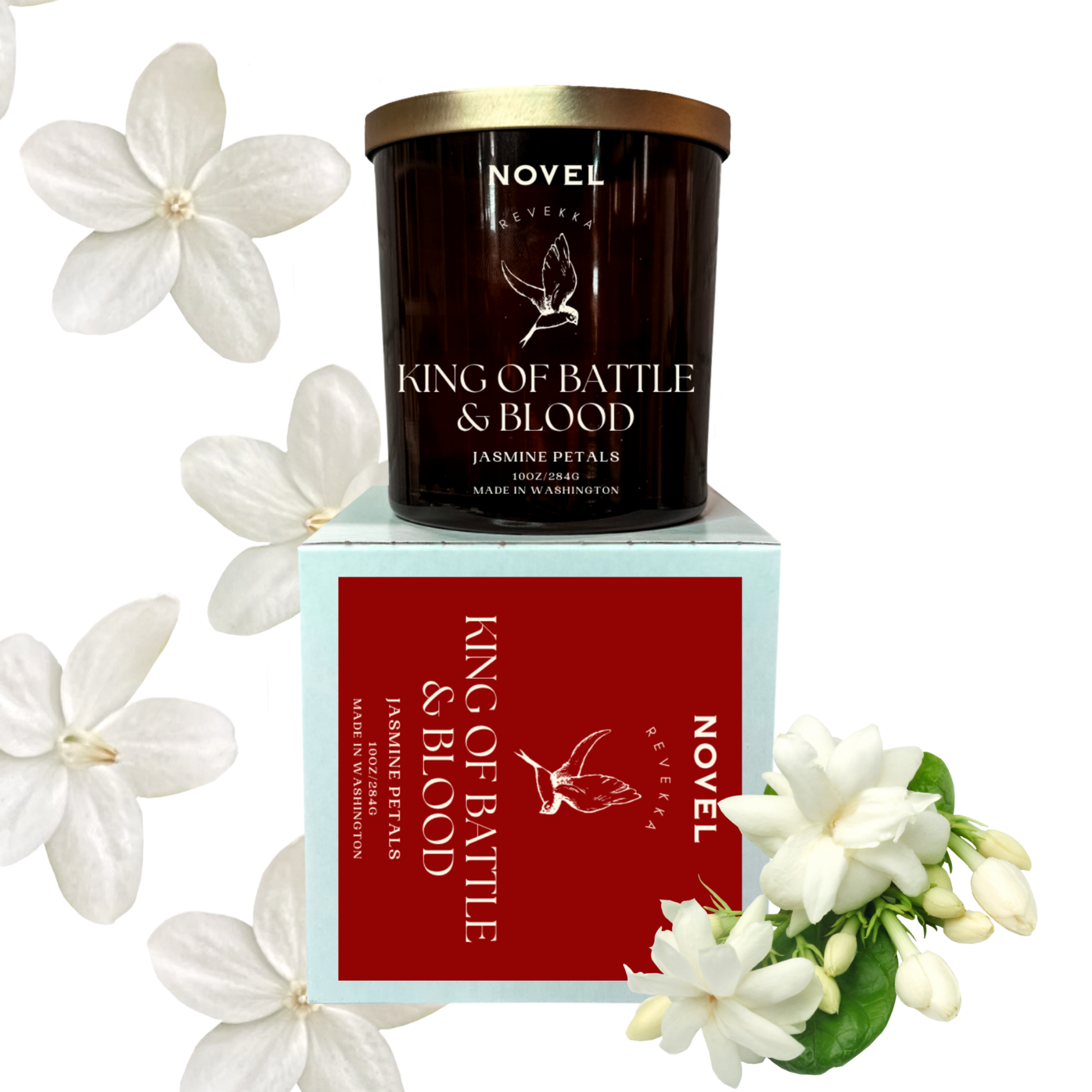 Details: Available in three size options: 3oz wax melt, 8oz candle and 10oz candle. Each Novel Candle is made using premium soy wax, ambiance-enhancing wood wicks and uses only the highest quality and cleanest fragrance oils available. Inspired by King of Battle and Blood by Scarlett St. Clair. Created with permission from the author.
