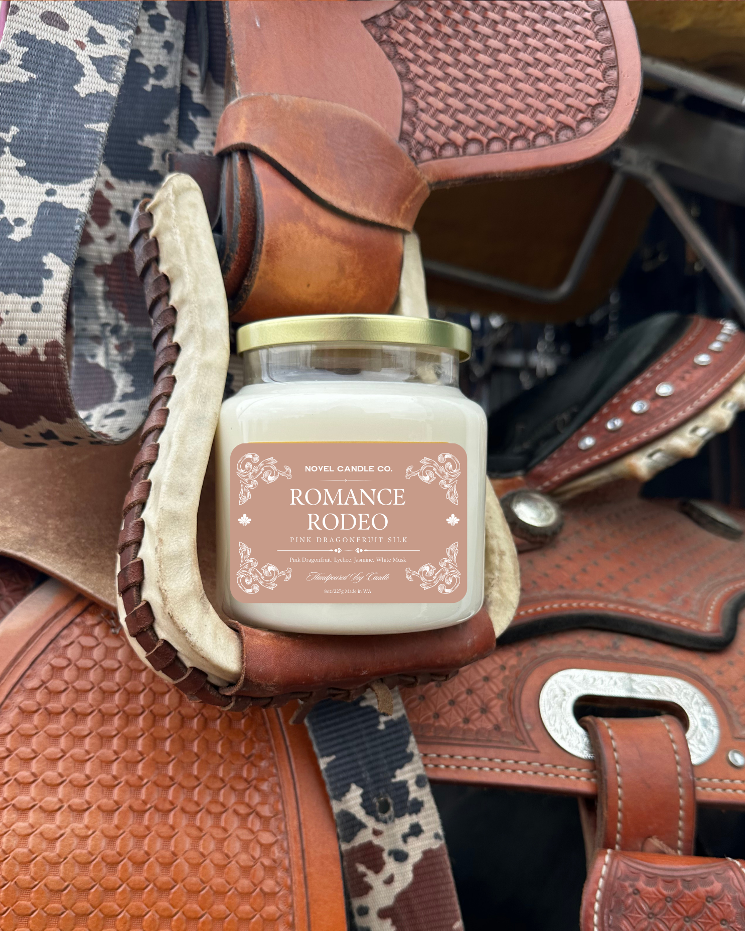 Our Rodeo Candle Collection is made for cowgirls. Each candle in our Rodeo Collection is in our 15oz Apothecary Candles. Each candle comes in a stunning clear apothecary jar with a gold lid.