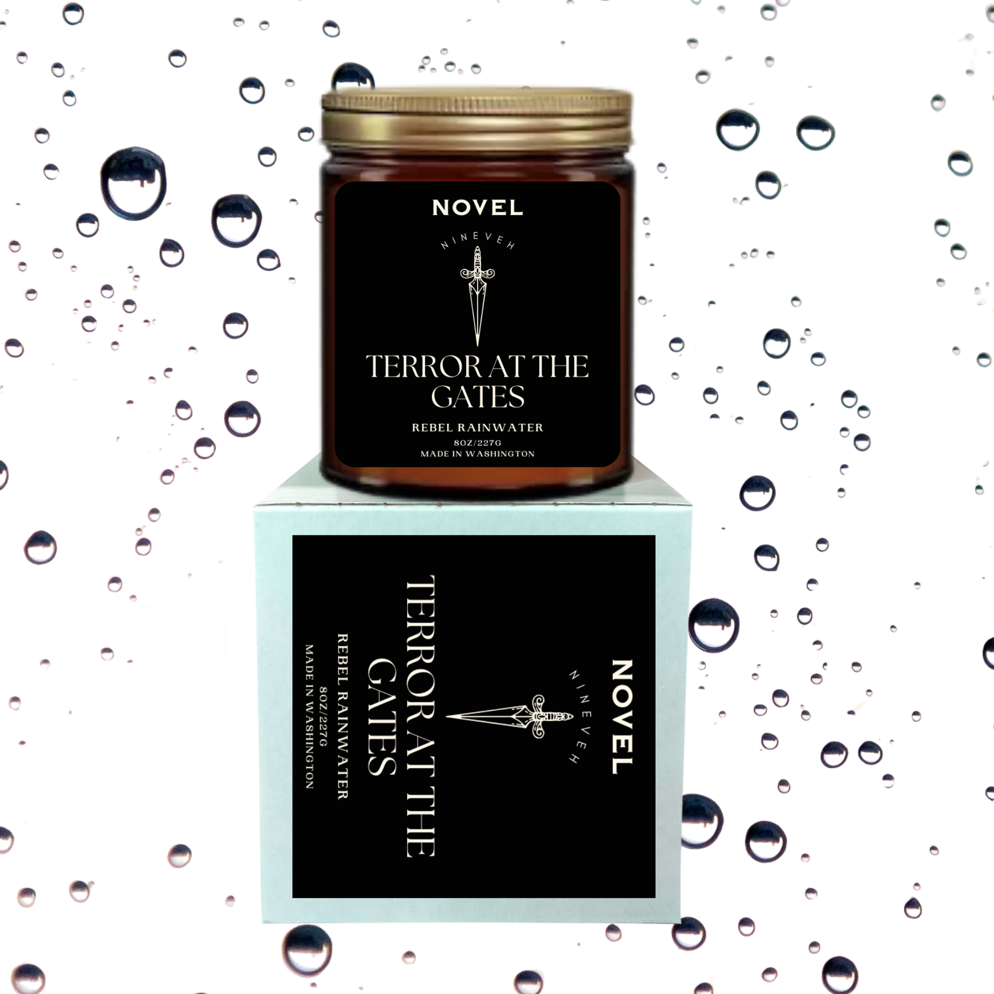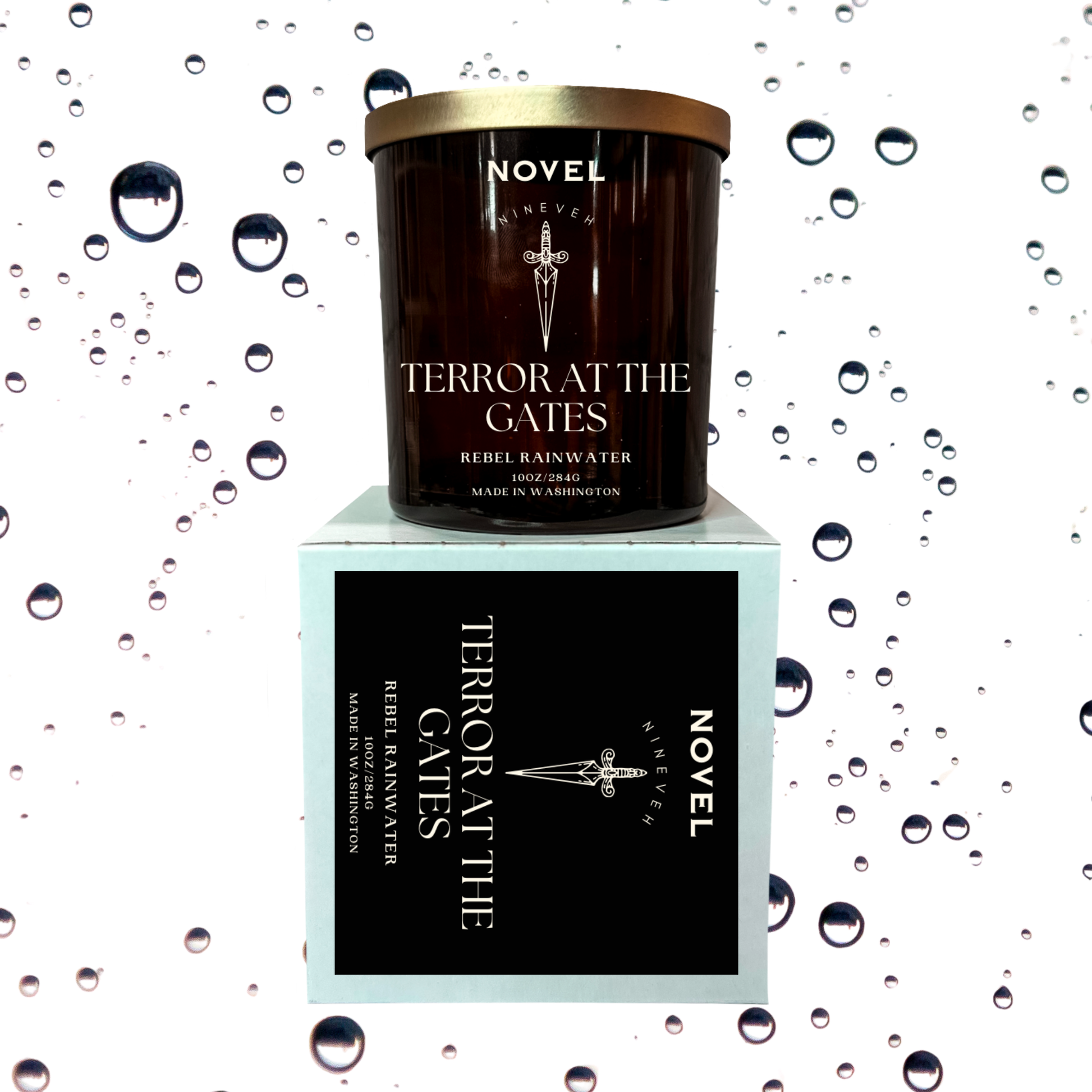 Details: Available in three size options: 3oz wax melt, 8oz candle and 10oz candle. Each Novel Candle is made using premium soy wax, ambiance-enhancing wood wicks and uses only the highest quality and cleanest fragrance oils available. Inspired byTerror at the Gates by Scarlett St. Clair. Created with permission from the author.